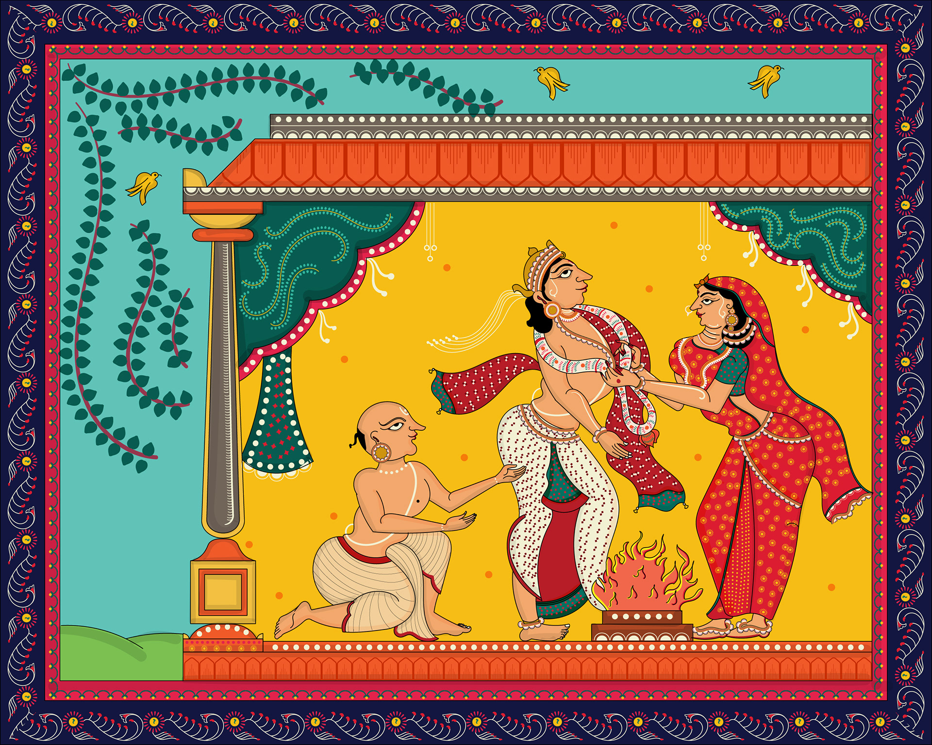 Hello! Orissa Pattachitra is an Indian folk art from Odisha. It is known for its intricate details and folktales inscribed in it. Here I have illustrated chef inspired by this art form along with an attempt on Illustrative lettering and Indian wedding sc…